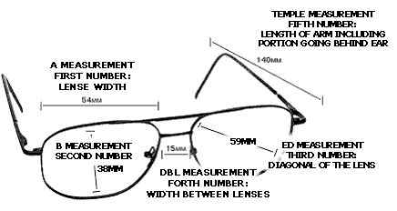 Example: The numbers on the frame reflect the SIZE MEASUREMENTS in millimeters (mm). 1st Number (ex.54) = the width of the lenses